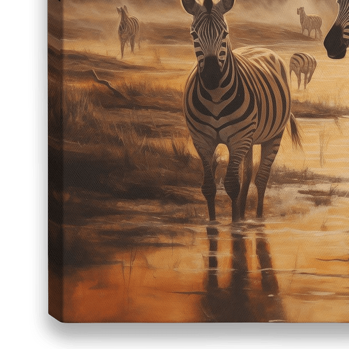 Unieke zebra's in savanne schilderij met artistieke stijl.