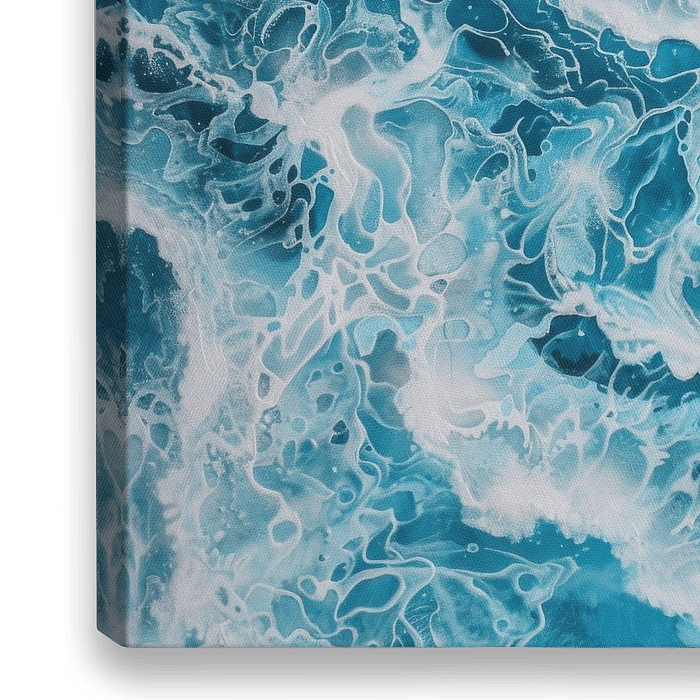 Deze afbeelding van de turquoise blauwe zee brengt de heldere schoonheid en rust van de oceaan in je woonkamer. De zachte golven en schuimende nevel creëren een verfrissende en rustgevende sfeer. Perfect voor iedereen die de sereniteit van de zeeën en oceanen in huis wil halen.