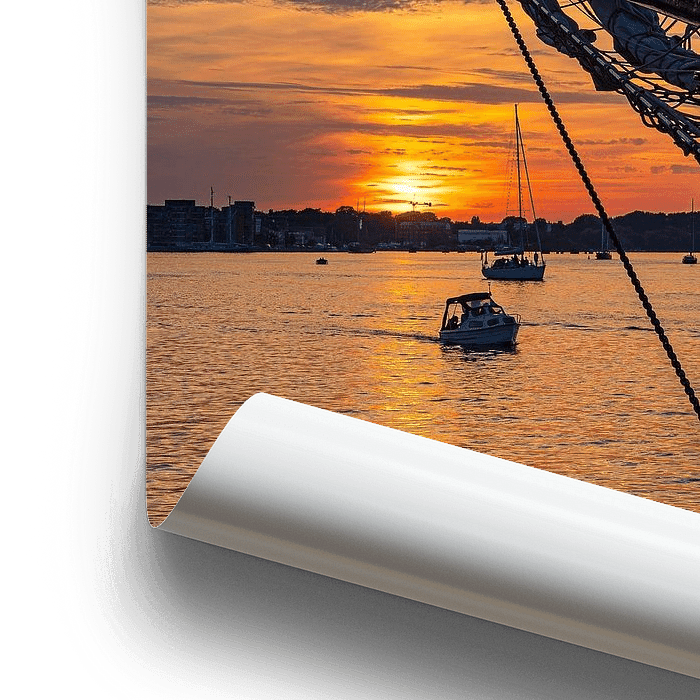 Koop de foto Zeilschepen op de Warnow bij zonsondergang tijdens de Hans van Rico Ködder op canvas, aluminium dibond, (ingelijste) fotoprint, behang en ArtFrame, op maat geprint in Fine-Art kwaliteit.
