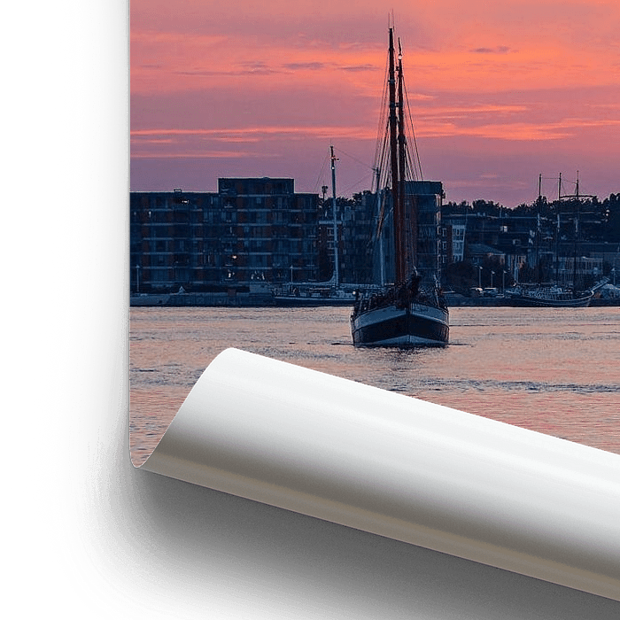 Koop de foto Zeilschepen op de Warnow bij zonsondergang tijdens de Hans van Rico Ködder op canvas, aluminium dibond, (ingelijste) fotoprint, behang en ArtFrame, op maat geprint in Fine-Art kwaliteit.