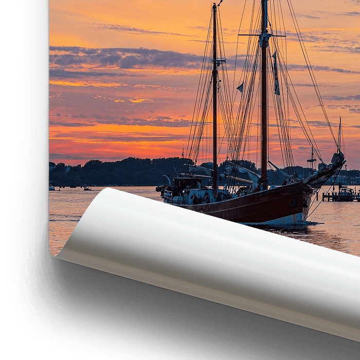 Koop de foto Zeilschepen op de Warnow bij zonsondergang tijdens de Hans van Rico Ködder op canvas, aluminium dibond, (ingelijste) fotoprint, behang en ArtFrame, op maat geprint in Fine-Art kwaliteit.