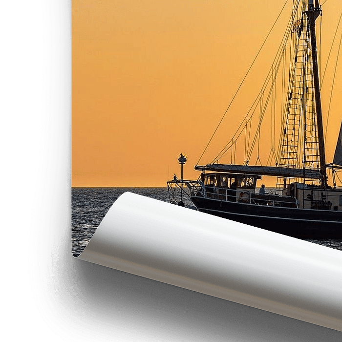 Koop de foto Zeilschip in de zonsondergang bij de Hanse Sail in Rostock van Rico Ködder op canvas, aluminium dibond, (ingelijste) fotoprint, behang en ArtFrame, op maat geprint in Fine-Art kwaliteit.