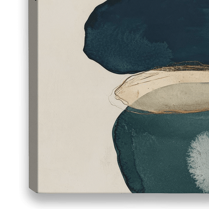 Soms is het leven een kwestie van de juiste elementen op elkaar stapelen en hopen dat alles in evenwicht blijft. Dit minimalistische kunstwerk straalt rust uit, met organische vormen en subtiele goudaccenten die doen denken aan gestapelde stenen in een zen-tuin. Perfect voor iedereen die een vleugje kalmte in huis wil halen.