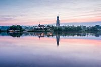 Zicht op Rhenen vanuit de Betuwe tijdens een mooie rustgevende zonsopkomst met prachtige pastel kleuren.