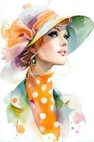 Elegant zomers portret van een vrouw in de stijl van een aquarelschilderij.