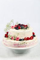 Koop dit bloemen kunstwerk Zomerse frisse bruidstaart in twee lagen feestelijke slagroomtaart versierd met bessen en bloemen van Thomas Heitz als print op canvas, aluminium dibond, (ingelijste) fotoprint, behang en ArtFrame. Voor jou op maat geprint in Fine-Art kwaliteit.