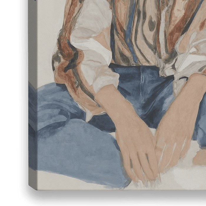 Geïnspireerd op de bold seventies woontrend combineert dit werk retrogevoel met moderne artistieke eenvoud. Zonder Gezicht toont een vrouw in een iconisch jaren ’70-patroon: een soepel vallende blouse met aardetinten, organische lijnen en een subtiel glanseffect, gedragen boven een…