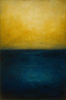 Een krachtige abstracte compositie waarin warme, gouden luchten overgaan in een diepe, rustgevende zee van blauw. Zonlicht boven Diep Water is geïnspireerd op de sfeer van een stille ochtend aan de kust, en roept tegelijk een gevoel van sereniteit en diepte op. De zachte overgangen tussen de kleurvlakken en de subtiele texturen doen denken aan de stijl van Mark Rothko, maar met een frisse maritieme invalshoek.