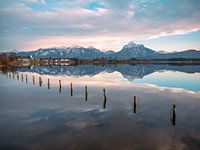 Zonsondergang aan de Hopfensee met zicht op de Tegelberg en de Säuling in Allgäu