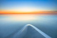 Een mooie verstilde zonsondergang boven het IJsselmeer bij Workum in Friesland. Een warme gloed verlicht nog de horizon en contrasteert mooi met de koele tinten van de avond.