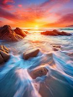 Koop dit digital art kunstwerk Zonsondergang in Californië van haroulita als reproductie op canvas, aluminium dibond, (ingelijste) fotoprint, behang en ArtFrame, op maat geprint in Fine-Art kwaliteit.