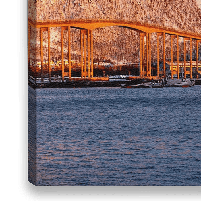 Tromsø is de grootste stad in noord Noorwegen. De stad ligt voor het grootste deel op het gelijknamige eiland. Deze foto is gemaakt in de winter en we zien onder andere de brug naar het vaste land en de IJszeekathedraal.