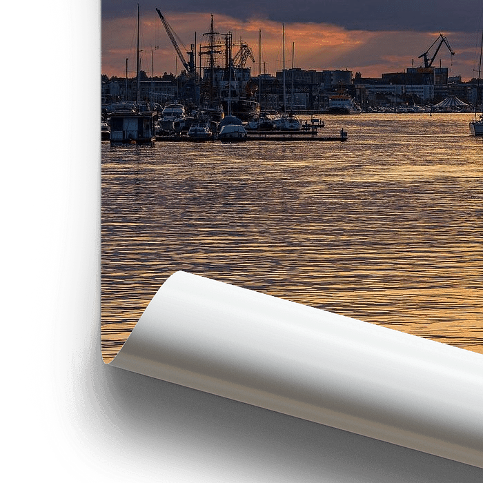 Koop de foto Zonsondergang met zeilboten in de haven van Rostock van Rico Ködder op canvas, aluminium dibond, (ingelijste) fotoprint, behang en ArtFrame, op maat geprint in Fine-Art kwaliteit.
