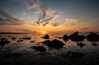 prachtige kleuren en reflecties in het water van de westerschelde bij deze zonsondergang de wolken lijken naar de zon te worden gezogen.