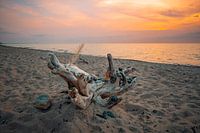 Zonsondergang op de westrand bij Ahrenshoop aan de Oostzee. Fischland Zingst Darß, Mecklenburg-Vorpommern