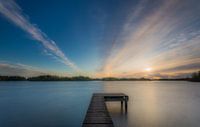 Bij het Paterswoldsemeer in Groningen was die avond een prachtige zonsondergang te zien. In de verte zie je twee hele kleine kanoërs.