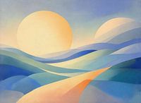 Zonsondergang - Dit abstracte schilderij toont een vloeiend kleurverloop en zachte, golvende lijnen die een suggestie van zonsondergang over rustige wateren creëren.