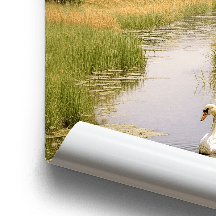 Een zwaan in een typisch Nederlans landschap. Een rustgevend beeld