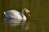 Koop dit vogel kunstwerk Zwaan komt met snavel uit het water van Leo Huijzer op canvas, aluminium dibond, (ingelijste) fotoprint, behang en ArtFrame, op maat geprint in Fine-Art kwaliteit.