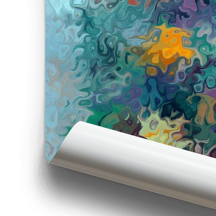 Abstracte impressie van kleurige bloemen, rood, geel, paars en oranje zijn de voornaamste kleuren.