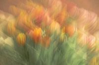 ICM, ofwel intentional camera movement van een boeket tulpen. De beweging zorgt voor een abstract en dynamisch beeld.