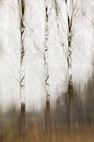 de nog aanwezige herfsttinten in het bos geeft een warmer effect op de meervoudige belichting van deze bomen. De Berken hebben een mooie schors.