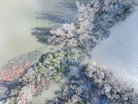 luchtfoto van bomen in ondergelopen weiland langs de rivier de ijssel