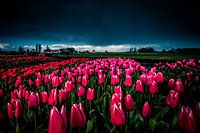Tulpenveld langs de Hazeweel in Oostwoud. Woensdag 7 april 2021 met steeds veranderende en dreigende luchten.