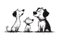 Een poster toont drie speelse honden in een Disney-stijl, in zwart-wit lijnen getekend. Elk hondje heeft expressieve gezichten en grote, schattige ogen, typisch voor de Disney-animaties. De honden hebben vrolijke, dynamische poses: eentje springt, een ander kwispelt enthousiast en de derde zit met een ondeugende blik. De contouren zijn…