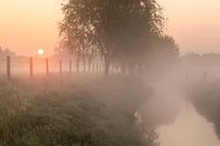 Koop de foto een mistige ochtend langs de beek in Menen van Fotografie Krist / Top Foto Vlaanderen op canvas, aluminium dibond, (ingelijste) fotoprint, behang en ArtFrame, op maat geprint in Fine-Art kwaliteit.