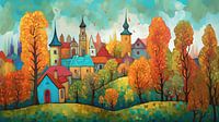kleurig kasteel met dorpje in de herfst