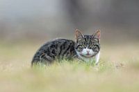 Felis silvestris catus / Domestic cat, Cat, Hauskatze, Katze with nice clear eyes lies in gras looking to the photographer.