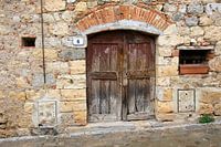 Montriggioni is een klein ommuurd stadje in Toscane, een van de best bewaarde middeleeuwse vestingsplaatsen in Italie. het stadje ligt op de heuvel Monte Ala. Mijn oog viel op deze oude houten deur en de mooie kleuren van de stenen muur.