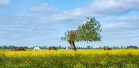 Koop dit bloemen kunstwerk paarden en zomers tafereel van boom in weiland met boterbloemen en blauwe lucht van anton havelaar op canvas, aluminium dibond, (ingelijste) fotoprint, behang en ArtFrame, op maat geprint in Fine-Art kwaliteit.