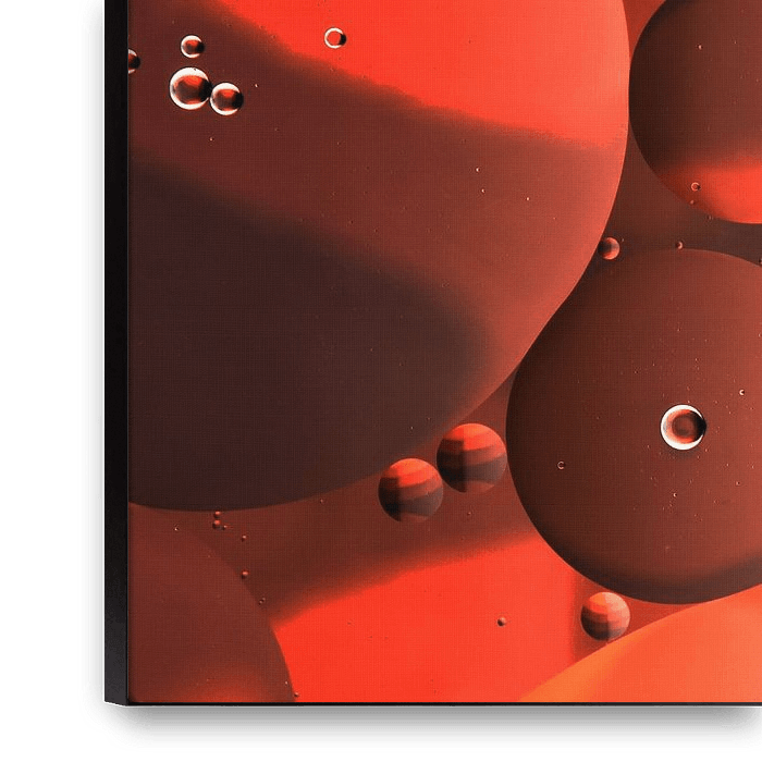 Koop dit abstracte kunstwerk rode, oranje, bruine tinten in druppels olie ( vierkant ) van Marjolijn van den Berg op canvas, aluminium dibond, (ingelijste) fotoprint, behang en ArtFrame, op maat geprint in Fine-Art kwaliteit.