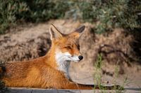 vos in de duinen. Hij ligt heerlijk in het zonnetje uit te rusten van een jachtpartij
