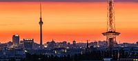 Koop de foto skyline van Berlijn bij zonsopgang van Frank Herrmann op canvas, aluminium dibond, (ingelijste) fotoprint, behang en ArtFrame, op maat geprint in Fine-Art kwaliteit.