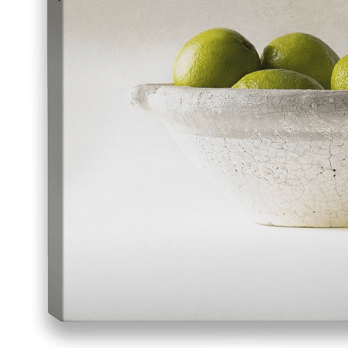 Ingetogen stilleven met fles ,schaal en limoenen.