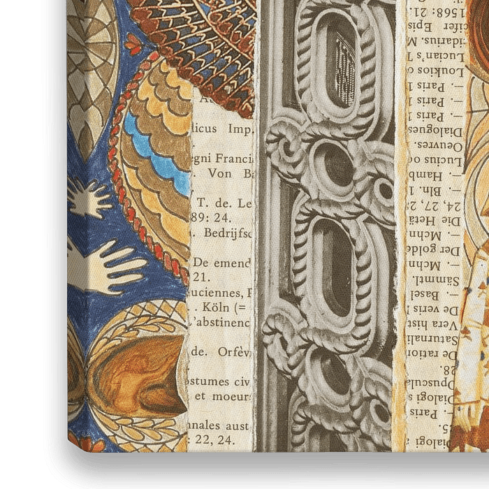 collage van stroken uit boeken, foto's van architectuur, afbeeldingen en ingekleurde zentangle