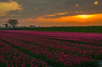 Zonsondergang aan de Berkmeerdijk in Obdam . Met in de verte de molen van Hoogheemraadschap NHHK aan de Veenhuizerkade.