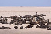 Walvis Bay in Namibië is vanouds een Duitse havenplaats. Aan het strand vind je veel zeehonden en robben, Maar ook kun je hier flamingo's zien.