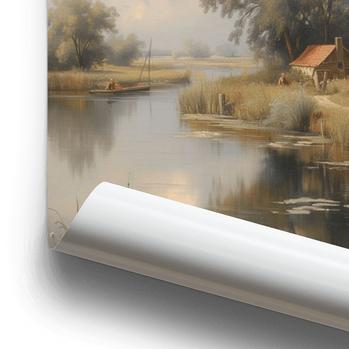 Het werk vangt het hart van het Nederlandse zomerlandschap, waarin een levendige combinatie van elementen samensmelt tot een idyllisch tafereel. Het middelpunt van de compositie wordt gevormd door een typisch Nederlandse windmolen, haar wieken traag draaiend in de zomerbries. De molen staat langs de oever van…