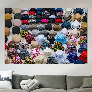 Hoofddeksel op canvas, aluminium, behang, poster en meer