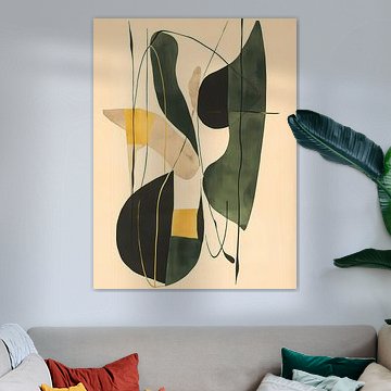 Geometrische kunst in mosterd en donkergroen van haroulita