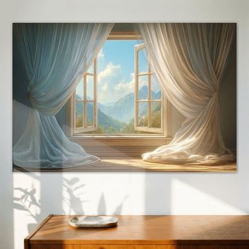 Venster (muur) op canvas, aluminium, behang, poster en meer