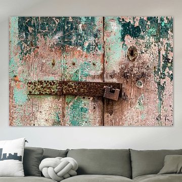 Vergankelijkheid oude deur met slot en afbladderende verf van Dieter Walther