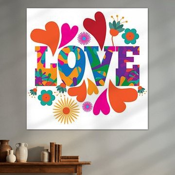 Liefde belettering met harten en bloemen vintage jaren '70 stijl van Herbert Blum