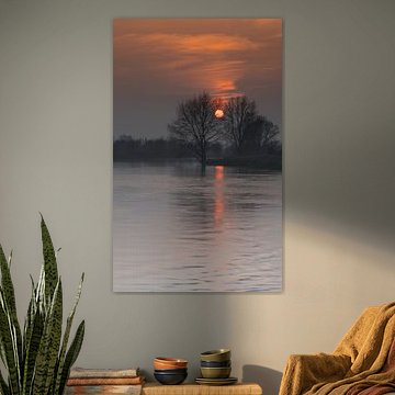 Panorama Schip op de Waal met zon (zonsopkomst) van John Verbruggen