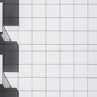 Schaduwen van balkons op witte muur.