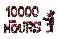 Digital composite. Grüntyers sillystration. 10000 hours with an overlay of bokeh musical notes. It is said that it takes 10000 hours of practice in order to master a skill, trade or craft. musician, composer, ability, work, rule expertise, “10000 hour rule” , mastery,